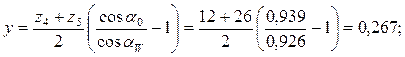 Зубчатое зацепление состоит из колес m = 5мм. Считаем, что зубчатые колеса – прямозубые эвольвентные цилиндрические, нарезанные стандартным реечным инструментом. 3.3.1. Определяем: • коэффициенты смещения реечного инструмента из условия устранения подреза: для колеса