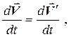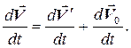 де V – швидкість руху точки щодо нерухомої системи О, а V¢ - швидкість руху точки щодо рухомої системи О ¢. Це співвідношення називається законом додавання швидкостей. Диференціюючи цей закон за часом ще раз, одержимо: