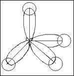 При определении геометрической формы таких молекул учитывают, что p-связи образуются только «чистыми» р-орбиталями, в этом случае образуются совмещённые конфигурации. Например: COCl2