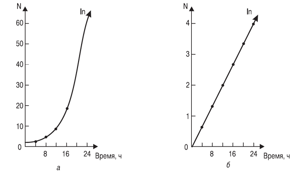 Еще в ХVII в. заметили, что численность популяций растет по закону геометрической прогрессии, а уже в конце ХVIII в. Томас Мальтус (1766-1834) выдвинул свою известную теорию о росте народонаселения в геометрической прогрессии. Эта закономерность роста выражается кривой, изображенной на рис. 3.2, a.
