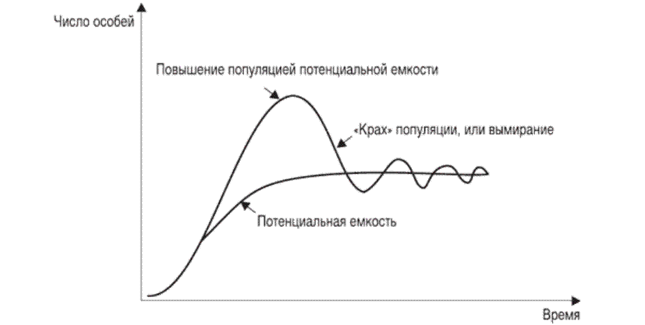 Рис. 3.4. Преобразование J-образной кривой роста численности в S-образную кривую