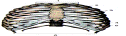 Рис. 21. Строение грудной клетки (вид спереди): 1 – верхняя апертура грудной клетки 2 – грудина 3 – ребра 4 – подгрудинный угол 5 – позвоночный столб 6 – нижняя апертура грудной клетки