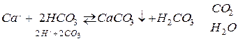 В пластовых водах |НСО3| >> |СО3|, и образование СаСО3 происходит в основном по схеме (V.15). В отличие от большинства неорганических солей кальцит лучше растворяется в воде с уменьшением температуры. Если при 100 °С его равновесная концентрация составляет 14 мг/л, то при О°С — 85 мг/л. Однако с уменьшением давления и температуры из раствора выпадает осадок СаСО3, ибо на направление реакции по схеме (V.15) в значительно большей степени, чем температура влияет парциальное давление углекислого газа. Влияние парциального давления СО2 на растворимость NСаСО3 в воде дано ниже.