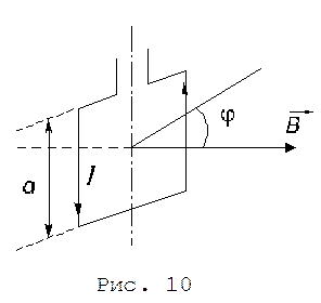 Решение. Работа внешних сил по перемещению контура с током в магнитном поле равна произведению силы тока в контуре на изменение магнитного потока через контур (рис. 10):