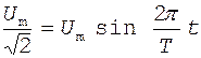 Используя уравнение гармонического колебания, в котором отсчет времени ведется от момента, когда напряжение равно нулю, имеем