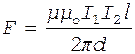 где d - расстояние между проводниками; l - их длина; I 1 и I 2 - токи в проводниках; m - магнитная проницаемость среды, равная для вакуума m = 1; m о - магнитная постоянная. Подставив в формулу известные нам значения, получаем