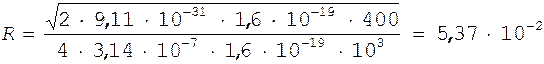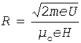 где e - заряд электрона; v - скорость электрона; B - магнитная индукция; m - масса электрона; R - радиус кривизны траектории; a - угол между векторами