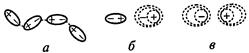 Рис. 14. Типы межмолекулярных взаимодействий: а – ориентационное, б – индукционное, в – дисперсионное Силы межмолекулярного взаимодействия по сравнению с обычными валентными силами ненасыщаемы, имеют низкую энергию, действуют на небольших расстояниях. Например, энергия связи Cl-Cl составляет 245 кДж/моль, а энергия связи между молекулами Cl2 в кристалле хлора на порядок ниже и составляет 25 кДж/моль. Сила межмолекулярного взаимодействия возрастает с увеличением размеров молекул.