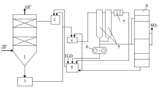 5.2 сурет - күкiрт оксидтерiнен ылғалды-құрғақ тәсілмен тазартудың сұлбасы.