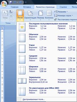 Форматирование документа – процедура оформления текста, набор операций, с помощью которых производится разбивка текста на строки и страницы, выбор расположения абзацев, отступов и отбивок между абзацами, обтекания отдельных абзацев, а также видов и начертаний шрифтов. Структура документа – порядок расположения в рабочем документе заголовков, текста и вложенных документов. Защита документа – обеспечение сохранности документа от случайного или несанкционированного изменения. Виды организации защиты документа: 1) опечатывание с помощью цифрового сертификата (требуется наличие сертификата на цифровую подпись); 2) запрос пароля при открытии или изменении документа; 3) рекомендация доступа только для чтения; 4) защита полей электронной формы от случайного изменения; 5) разрешение добавления только примечаний и записей исправления; 6) защита форматирования. Для достижения успеха следует уметь выполнять действия: Ø задать поля страницы текстового документа в меню программы выбрать вкладку Разметка страницы (щелкнуть левой кнопкой мыши), выбрать команду «Поля», выбрать поле из предлагаемых или задать поля в закладке «Настраиваемые поля» Разметка страницы®Поля®Настраиваемые поля®…