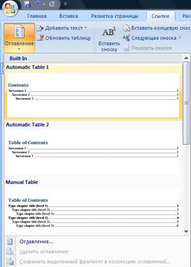 Рис. 10. Окно выбора типа оглавления. Ø просмотр структуры документа в меню программы открыть вкладку Вид, в разделе «Режим просмотра документа» выбрать «Структура» Вид®Режим просмотра документа®Структура®… Ø выделить текст в меню программы открыть вкладку Главная, в разделе «Редактирование» выбрать «Выделить», в появившемся окне выбрать «Выделить все» Главная®Редактирование®Выделить®Выделить все