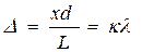 где x – расстояние от центральной светлой полосы до к -й светлой полосы. Ок