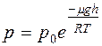 где n - концентрация частиц, En - потенциальная энергия молекулы в поле тяготения, n0 - концентрация частиц в тех точках поля, где E n = 0. 10. Барометрическая формула, выражающая зависимость давления идеального газа от высоты h над поверхностью Земли