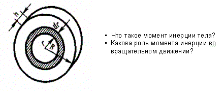 При изучении вращения твердых тел будем пользоваться понятием момента инерции. Моментом терции системы (тела) относительно данной оси называется физическая величина, равная сумме произведений масс п материальных точек системы на квадраты их расстояний до рассматриваемой оси: