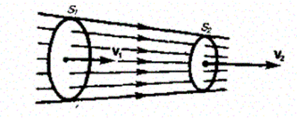 Часть жидкости, ограниченную линиями тока, называют трубкой тока. Течение жидкости называется установившимся (или стационарным), если форма и расположение линий тока, а также значения скоростей в каждой ее точке со временем не изменяются. Рассмотрим какую-либо трубку тока. Выберем два ее сечения S1 и S2,перпендикулярные направлению скорости (рис. 46).