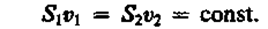 За время Dt через сечение S проходит объем жидкости SvDt; следовательно, за 1 с через S1 пройдет объем жидкости S1v1, где v1— скорость течения жидкости в месте сечения S1.Через сечение S2 за 1 с пройдет объем жидкости S2v2, где v2 — скорость течения жидкости в месте сечения S2. Здесь предполагается, что скорость жидкости в сечении постоянна. Если жидкость несжимаема (r=const), то через сечение S2пройдет такой же объем жидкости, как и через сечение S1 ъ т. е.