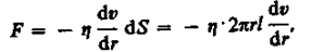где dS— боковая поверхность цилиндрического слоя; знак минус означает, что при возрастании радиуса скорость уменьшается.