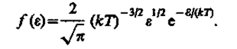 где dN(e) — число молекул, имеющих кинетическую энергию поступательного движения, заключенную в интервале от e до e + de. Таким образом, функция распределения молекул по энергиям теплового движения