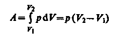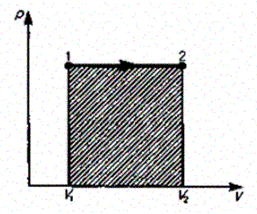 Изобарный процесс (р — const). Диаграмма этого процесса (изобара) в координатах р, Vизображается прямой, параллельной оси V. При изобарном процессе работа газа (см. (52.2)) при увеличении объема от V1 до V2равна
