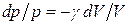 Интегрируя это уравнение в пределах от p1 до р2и соответственно от V1до V2, а затем потенцируя, придем к выражению