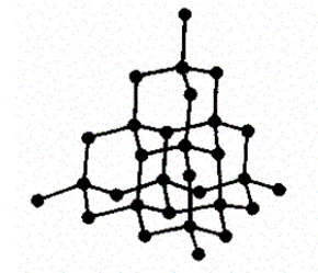 Силы взаимодействия между ионами являются в основном электростатическими (кулоновскими). Связь, обусловленная кулоновскнми силами притяжения между разноименно заряженными ионами, называется ионной (или гетерополярной). В ионной решетке нельзя выделить от дельные молекулы: кристалл представляет собой как бы одну гигантскую молекулу. Атомные кристаллы. В узлах кристаллической решетки располагаются нейтральные атомы, удерживающиеся в узлах решетки гомеомолярными, или ковалентными, связями квантово-механического происхождения (у соседних атомов обобществлены валентные электроны, наименее связанные с атомом). Атомными кристаллами являются ал маз и трафит (два различных состояния углерода), некоторые неорганические соединения (ZnS, BeO и т. д.), а также типичные полупроводники — германий Ge и кремний Si. Структура решетки алмаза приведена на рис. 104, где каждый атом углерода окружен четырьмя такими же атомами, которые располагаются на одинаковых расстояниях от него в вершинах тетраэдров.