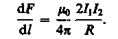 Если два параллельных проводника с током находятся в вакууме (m = 1),то сила взаимодействия на единицу длины проводника, согласно (111.5), равна