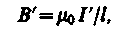 где I' — сила молекулярного тока, l — длина рассматриваемого цилиндра, а магнитная проницаемость mпринята равной единице. С другой стороны, I'/I — ток, приходящийся на единицу длины цилиндра, или его линейная плотность, поэтому магнитный момент этого тока p = I' l S/ l = I'V/ l, где V— объем магнетика. Если Р— магнитный момент магнетика объемом V, то намагниченность магнетика