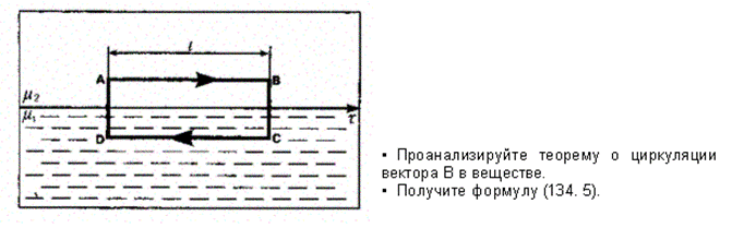 Вблизи границы раздела двух магнетиков 1и 2 построим небольшой замкнутый прямоугольный контур ABCDA длиной l, ориентировав его так, как показано на рис. 191.