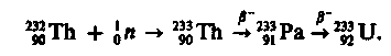 Большинство нейтронов при делении испускается практически мгновенно (t £ 10- 14 с), а часть (около 0,7%) испускается осколками деления спустя некоторое время после деления (0,05 с £ t £ 60 с). Первые из них называются мгновенными, вторые — запаздывающими. В среднем на каждый акт деления приходится 2,5 испущенных нейтронов. Они имеют сравнительно широкий энергетический спектр в пределах от 0 до 7 МэВ, причем на один нейтрон в среднем приходится энергия около 2 МэВ. Расчеты показывают, что деление ядер должно сопровождаться также выделением большого количества энергии. В самом деле, удельная энергия связи для ядер средней массы составляет примерно 8,7 МэВ, в то время как для тяжелых ядер она равна 7,6 МэВ (см. § 252). Следовательно, при делении тяжелого ядра на два осколка должна освобождаться энергия, равная примерно 1,1 МэВ на один нуклон. Эксперименты подтверждают, что при каждом акте деления действительно выделяется огромная энергия, которая распределяется между осколками (основная доля), нейтронами деления, а также между продуктами последующего распада осколков деления. В основу теории деления атомных ядер (Н. Бор, Я. И. Френкель) положена капельная модель ядра (см. § 254). Ядро рассматривается как капля электрически заряженной несжимаемой жидкости (с плотностью, равной ядерной, и подчиняющейся законам квантовой механики), частицы которой при попадании нейтрона в ядро приходят в колебательное движение, в результате чего ядро разрывается на две части, разлетающиеся с огромной энергией. Вероятность деления ядер определяется энергией нейтронов. Например, если высокоэнергетичные нейтроны (см. § 264) вызывают деление практически всех ядер, то нейтроны с энергией в несколько мегаэлектрон-вольт — только тяжелых ядер (А>210). Нейтроны, обладающие энергией активации (минимальной энергией, необходимой для осуществления реакции деления ядра) порядка 1 МэВ, вызывают деление ядер урана 23892U, тория 23290Th, протактиния 23191Ра и плутония 23994Рu. Тепловыми нейтронами делятся ядра 23592U, 23892U и 23392U, 23090Th (два последних изотопа в природе не встречаются, они получаются искусственным путем). Например, изотоп 23392U получается в результате радиационного захвата (реакции (n, g),см. § 264) нейтронов ядром 23290Th: