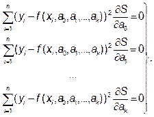 Рис. 1. Геометрическая интерпретация метода наименьших квадратов Если параметры ai входят в зависимость Y = f (x, a 0 a 1,..., ak) линейно, то получим систему из k -линейных уравнений с k неизвестными: