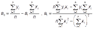 Сформируем систему линейных уравнений (2) решив которую, определим коэффициенты функции Y = a 0 + a 1 x:
