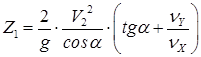 Y = Vy.t - gt2/2 (11) где g - ускорение свободного падения (g = 9,82 м/сек2) От первого соударения до второго шарик проходит вдоль наклонной плоскости расстояние Z1. X = Z1.cosa Y = Z1.sina (12) Подставляя (12) в (11) и решая систему (11) относительно Z1, получим: