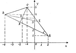 Итак, К(-1,75; 3,5), что соответствует чертежу на рис. 1. б.Длина высоты СD есть расстояние от вершины С до стороны АВ. Поэтому длину высоты находим по формуле расстояния от точки