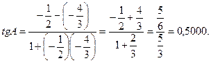 Следовательно, в формуле надо положить Найдем указанные угловые коэффициенты прямых. Для этого нет необходимости составлять их уравнения, проще воспользоваться формулой, где угловой коэффициент прямой находится по координатам двух ее точек. Так, в нашем примере: