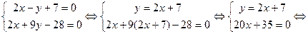 Замечание. Возьмите себе за правило проверять полученные результаты, причем это следует делать не простым повторением проделанных действий, а каким-либо другим способом. Например, полученное уравнение высоты СD проверьте, подставив в него координаты точки С, при этом должно получиться тождество. Действительно: 2 (- 1) – 5 + 7 = 0.