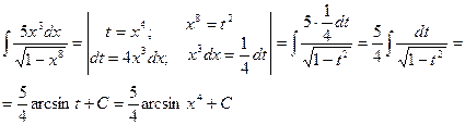 Новая переменная иногда выбирается из следующих соображений: в знаменателе стоит разность постоянной и квадрата некоторой функции. Эту функцию мы принимаем за новую переменную, если в числителе присутствует ее производная (с точностью до постоянного множителя).