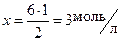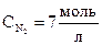 Начальная концентрация вещества складывается из равновесной концентрации этого вещества и количества вещества, израсходованного на образование равновесной концентрации продукта реакции. На основе уравнения реакции определяем количество израсходованного N2:
