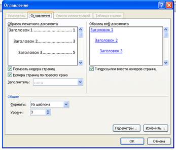 Создание оглавления. Оглавление документа– это перечень названий структурных частей документа, упорядоченных в соответствии с его иерархической схемой