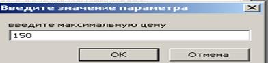 Упражнение 4. Создание запросов с параметром Специальный тип запросов «С параметром» позволяет ввести критерий отбора на этапе запуска запроса. СОЗДАЙТЕ ПРОСТОЙ ЗАПРОС на выборку процессоров, продельную цену которых пользователь может задать сам при запуске запроса. 1. Открыть базу данных «Комплектующие». На панели «Запросы» создайте запрос в режиме Конструктор. В д.о. «Добавление таблицы» выберите таблицу «Поставщики» и «Добавьте» ее. Закройте это окно. В бланке запроса в списке полей таблицы «Поставщики» выберите поля для запроса: Компонент, Модель, Цена оптовая, Поставщики, Телефон. Условия отбора для поля Компонент: Процессор. Условия отбора для поля Цена: <[Введите максимальную цену], чтобы дать возможность выбора условия на максимальную цену. Закройте бланк запроса, сохранив его под именем «Выбор комплектующих1». В д.о. откройте этот запрос. Появится д.о. «Введите значение параметра». Введите какое-либо число.