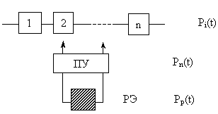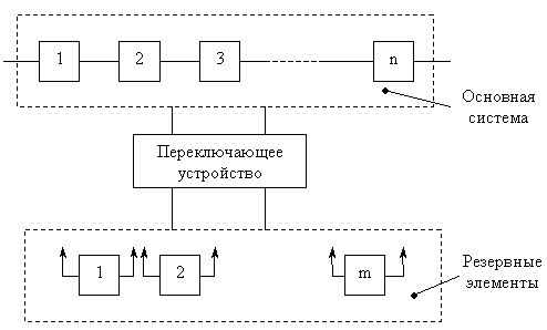 При скользящем резервировании резервный элемент может быть включен взамен любого из отказавших элементов основной системы. Структура скользящего резервирования: