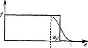 Эта энергия имеет простой термодинамический смысл. В согласии со сказанным выше функция распределения Ферми по квантовым состояниям (с определенными значениями импульса р и проекции спина) 1 (57,4) + 1 в пределе Т—► () обращается в рис. 6 эта функция изображена сплошной линией). Отсюда видно, что химический потенциал газа при Г = 0 совпадает с граничной энергией электронов: u. = ef. (57,5) Полная энергия газа получится умножением числа состояний (57,1) на р2/2ш и интегрированием по всем импульсам: Рр V f Voi.