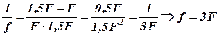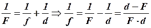 Формула тонкой линзы связывает между собой три величины: d - расстояние от предмета до линзы, f - расстояние от линзы до изображения; F - фокусное расстояние линзы.