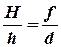В формуле тонкой линзы фокусное расстояние ОF обозначается буквой F. Если линза собирающая, то F>0, если линза рассеивающая, то F<0. Если изображение действительное, то f >0; если изображение мнимое, то f <0. Все величины в формулу линзы подставляются в метрах. Увеличением называют величину, которая определяется отношением размеров изображения Н к размерам предмета h. Обозначают увеличение буквой Г: Г =