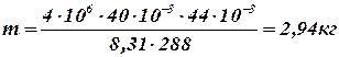 Найти массу углекислого газа в баллоне вместимостью 40 л при температуре 150С и давлении 4 МПа.