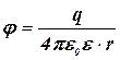 Wp – потенциальная энергия заряда q, помещённого в данную точку поля, Дж; q – величина электрического заряда, Кл. Потенциал поля точечного заряда q на расстоянии r от него или с учётом E: