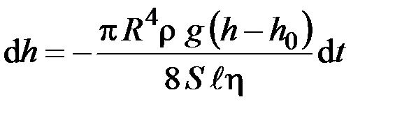 где S – площадь поперечного сечения столба жидкости в сосуде; d V – изменение объема жидкости в сосуде за время d t. Такой же объем d V жидкости протекает и через капиллярную трубку радиусом R и длиной