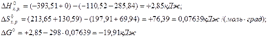 Решение. Используя стандартные энтальпии образования СО2 и MgO равны соответственно -393,5 и -601,8 кДж/моль (напомним, что стандартные энтальпии образования простых веществ равны нулю). Отсюда для стандартной энтальпии реакции находим: