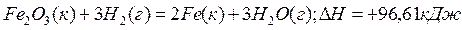 Пример 3. Восстановление Fe2O3 водородом протекает по уравнению