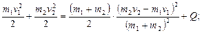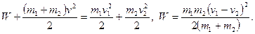 21. Екі пластилин шарик массалары m1 және m2, бір-біріне қарама-қарсы v1 және v2 жылдамдықтармен ұшып келіп, серпімсіз соқтығысады. Бөлінген жылудың мөлшерін анықтаңдар. Шешуі: Импульстің сақталу заңын негізге ала отырып: