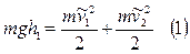 Соққы процесі кезінде сол жақтағы тастың кинетикалық энергиясы өзгереді және мынаған тең болады: